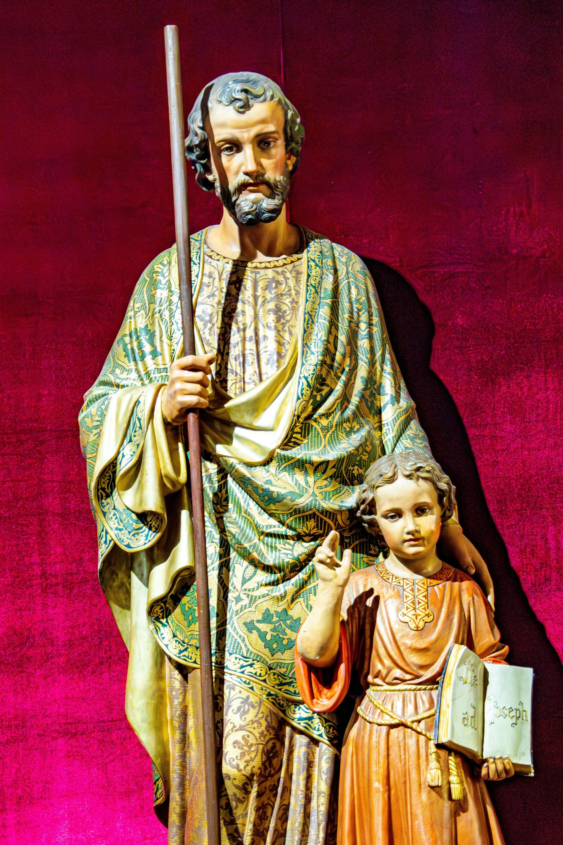 St Joseph is the great foster father of Jesus, specially chosen by God the Heavenly Father for this special vocation. He is called to protect, guide and provide for the needs of the Holy family, for Jesus and Mary. He cares for Jesus as a small child and into adulthood.