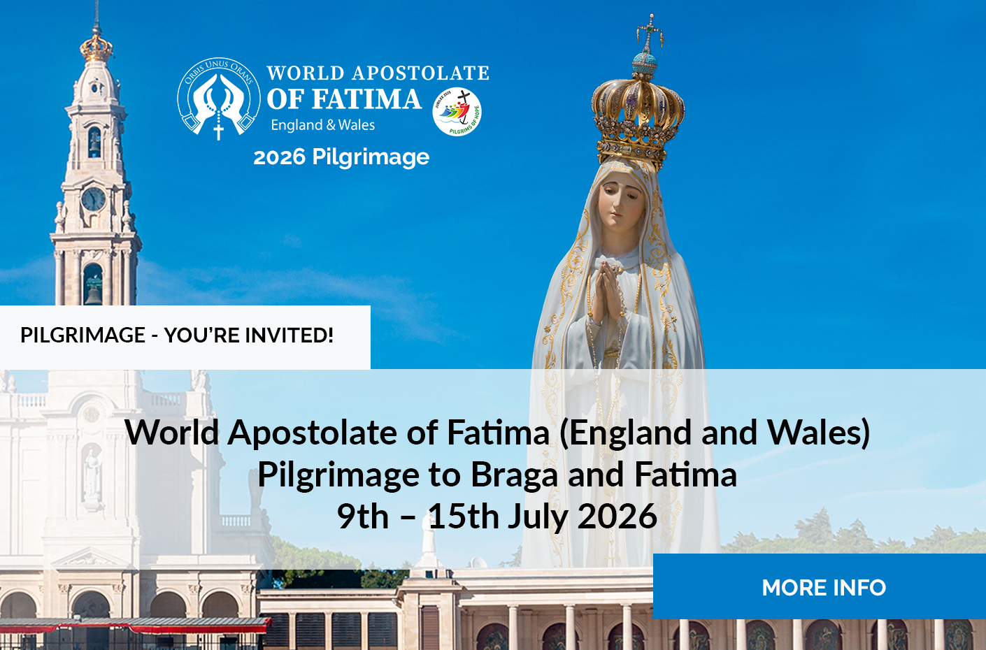 World Apostolate of Fatima (England and Wales) Pilgrimage to Braga and Fatima 9th th – 15 th July 2026 Day one - Thursday 9 th July 2026 (London-Porto-Braga) Flight from UK to Porto. (LGW/Porto – Easyjet 1005 / 1300) Meet our coach and guide and transfer to our accommodation in Braga. Time to see Braga. Dinner is provided at the hotel. Day two – Friday 10 th July 2026 (Braga-Balazar) After breakfast we begin our visit to the city of Braga and the Shrine of Sameiro and Bom Jesus. We break for lunch. In the afternoon pilgrimage to Balazar to pray at Blessed Alexandrina’s tomb. Mass in the chapel. Dinner and overnight accommodation at our hotel. Day three – Saturday 11 th July 2026 (Porto-Aveiro-Coimbra-Fatima) After breakfast we check out of our hotel in Braga and travel by coach to Porto. Free time to tour the city in the morning and enjoy lunch. In the afternoon we travel towards Fatima, stopping en route in Aveiro. We travel on to Coimbra and visit the Museum of Sister Lucia and say Rosary at the Convent Chapel. Check in at Domus Pacis hotel in Fatima and dinner. Day four – Sunday 12 th July 2026 (Fatima) Breakfast in the hotel Holy Mass in Domus Pacis or Shrine. We then have free time to independently tour the Sanctuary. Free for lunch. Visit to the House of Candles for a guided tour. 7.30 pm - Dinner at the hotel 9.30 pm - Participation in the evening Vigil We return to our hotel for our overnight accommodation. Day five – Monday 13 th July 2026 (Fatima) After breakfast we join the congregation for the International Mass in the Piazza of the Shrine of Fatima. Free for lunch 2.30 pm – We meet for talk of Nuno and Ana at Domus Pacis Chapel. 4.00 pm - Visit to the museum of Fr Formigao. 6.00 pm Fatima Prayer Cell at the Library of Domus Pacis. 7.30 pm Dinner 9.30pm Rosary and Candlelight procession Day six – Tuesday 14 th July 2026 (Fatima) After breakfast we depart by coach walk the Stations of the Cross. We visit the site of the Apparition of the Angel and celebrate Mass at St Stephen’s chapel. We then walk into the village of Aljustrel where we break for lunch before visiting the homes of the children. We return by bus to St Anthony’s Church for a renewal of baptismal promises. Return to the hotel. 7.30 pm Dinner 9.30pm Rosary and Candlelight procession Dinner and overnight accommodation in Fatima. Day seven – Wednesday, 15 th July 2026 (Fatima-Lisbon) After breakfast we check out of our hotel and depart for Lisbon. En route we visit Santerem before moving on to the Shrine of St Anthony where we celebrate Mass. We also visit the Convent of the Poor Clares where Jacinta stayed whilst waiting for a hospital bed. We travel on to the airport for our return flight to the UK. (1720/1955 LIS/LGW)Day 1 – Thursday, 9 July (London–Porto–Braga) Flight from London Gatwick to Porto. Transfer to Braga with time to explore the city. Dinner at the hotel. Day 2 – Friday, 10 July (Braga–Balazar) Visit Braga’s religious sites: Shrine of Sameiro and Bom Jesus. Afternoon pilgrimage to Balazar to pray at Blessed Alexandrina’s tomb. Mass and dinner at the hotel. Day 3 – Saturday, 11 July (Porto–Aveiro–Coimbra–Fatima) Travel to Porto for sightseeing and lunch. Continue to Fatima via Aveiro and Coimbra. Visit Sister Lucia’s museum and pray the Rosary. Check-in and dinner at Domus Pacis hotel. Day 4 – Sunday, 12 July (Fatima) Mass at Domus Pacis or the Shrine. Free time to explore the Sanctuary. Guided tour of the House of Candles. Dinner and participation in the evening vigil. Day 5 – Monday, 13 July (Fatima) Attend the International Mass at the Shrine. Afternoon talks and visits: Domus Pacis Chapel, Fr Formigao Museum, and Fatima Prayer Cell. Evening Rosary and Candlelight procession. Day 6 – Tuesday, 14 July (Fatima) Stations of the Cross and Mass at St Stephen’s Chapel. Visit Aljustrel village and homes of the visionaries. Renewal of baptismal promises at St Anthony’s Church. Dinner and evening procession. Day 7 – Wednesday, 15 July (Fatima–Lisbon) Depart for Lisbon with stops at Santerem and the Shrine of St Anthony. Visit the Convent of the Poor Clares. Return flight to London Gatwick. Price: £1,370 per person sharing a twin/double room on a half board basis. Single rooms are available at a supplement of £190. Price includes return airfare including hold baggage, accommodation as detailed in the itinerary, all transport whilst in Portugal, and all entrance fees. Price does not include lunches, drinks or items of a personal nature. Please note that this itinerary is not suitable for the less able traveller. Deposit of £400 and completed booking form required by 15.12.2024 with balance and any single supplement due by 16.4.2026. Booking Ref: WAF02