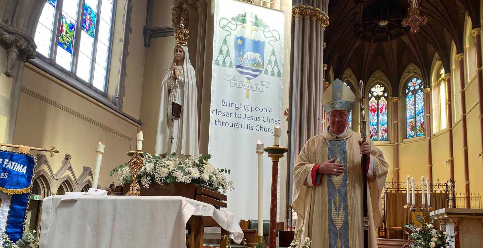 On the first Saturday of October, the National Pilgrim Virgin Statue (NPVS ) of Our Lady of Fàtima and the Relics of Saints Francisco and Jacinta Marto visited the Cathedral of St John the Evangelist in Portsmouth. Bishop Philip Egan welcomed, crowned, and blessed the statue, relics, and the Centenary Icon of the Pontevedra apparition during Mass, attended by about 200 faithful from across the diocese. In his homily, Bishop Philip emphasized the Immaculate Heart of Mary and her call for conversion and reparation. ๏ปฟ He also led a 15-minute meditation and the recitation of the Joyful Mysteries of the Rosary. Canon James McAuley, Cathedral Dean and Vicar General, guided the veneration of the relics and welcomed the congregation. Fr Ryan Browne, the cathedral curate, presided over the enrollment and investiture of brown scapulars. May Our Lady's Immaculate Heart be your refuge and guide you to God.