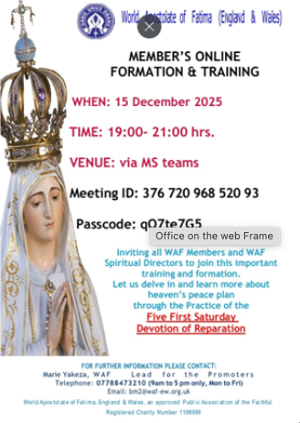 Maybe we are writing our Christmas Day lunch guest list, maybe we are replying to Christmas party invitations. The Immaculate Heart of Mary โฏis offering us an invitation which demands an RSVP, โฏa yes, โฏwhich is an echo of her “ yes” at the annunciation to the Archangel Gabriel. This invitation is to take up the 5 first Saturday devotion and to spread far โฏand wide the invitation to family and friends and to fellow parishioners .โฏ