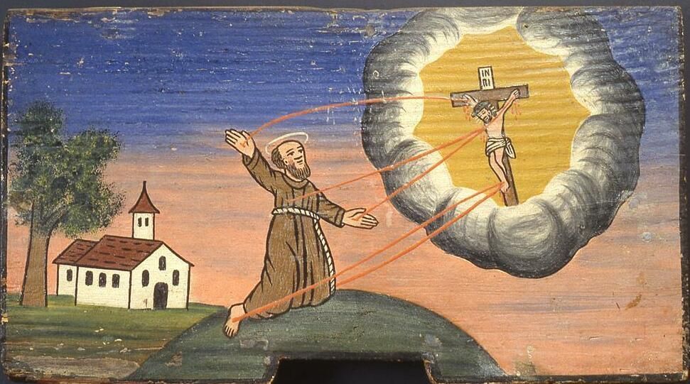 Saint Francis of Assisi, the first recorded stigmatist, received the wounds of Christ while praying in solitude on Mount La Verna and beholding a vision of a crucified, radiant seraph. After this event, his life was marked by deeper illness and weakness, yet also by a remarkable joy and gentleness toward others.