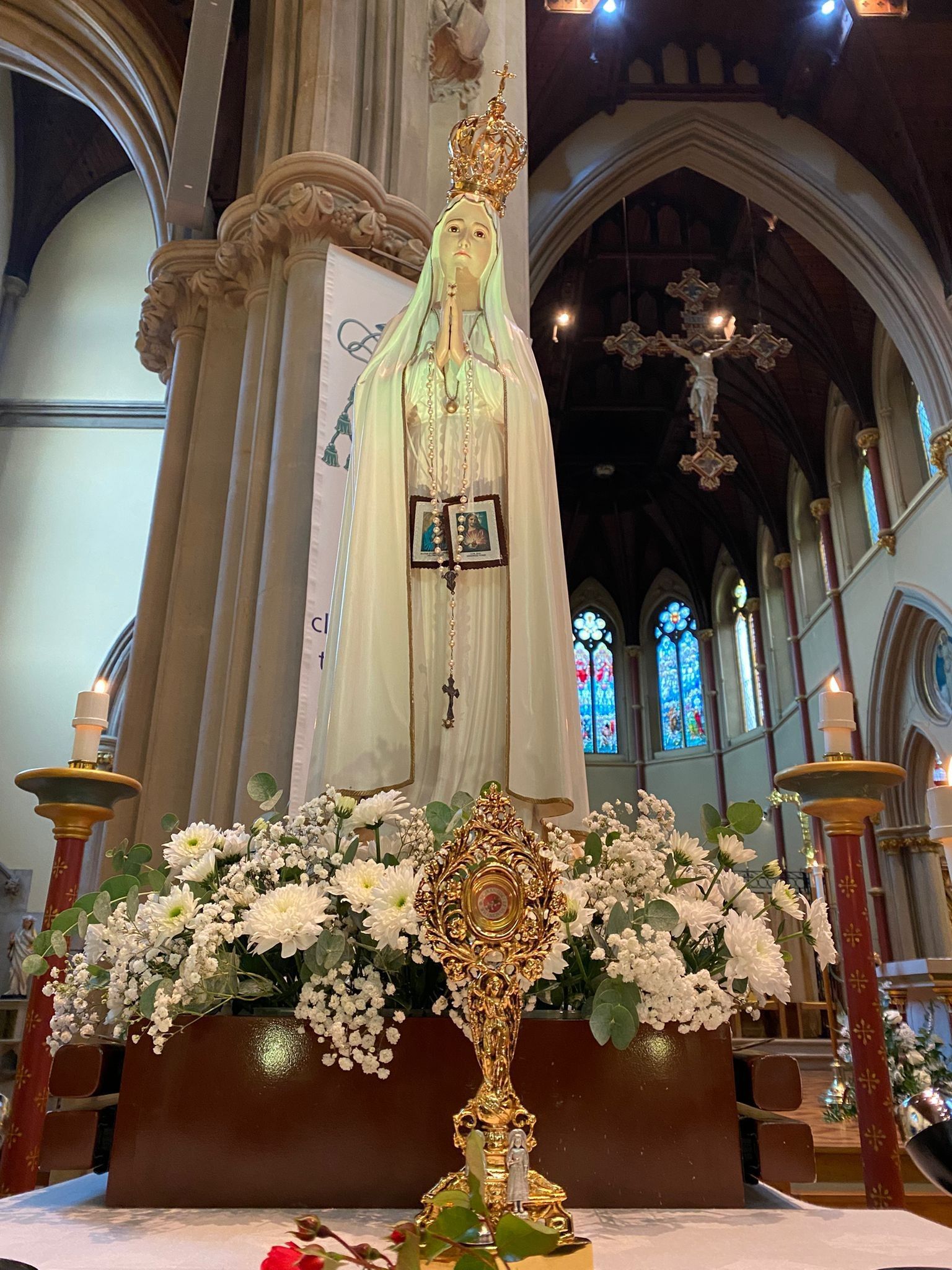 On the first Saturday of October, the National Pilgrim Virgin Statue (NPVS ) of Our Lady of Fàtima and the Relics of Saints Francisco and Jacinta Marto visited the Cathedral of St John the Evangelist in Portsmouth. Bishop Philip Egan welcomed, crowned, and blessed the statue, relics, and the Centenary Icon of the Pontevedra apparition during Mass, attended by about 200 faithful from across the diocese. In his homily, Bishop Philip emphasized the Immaculate Heart of Mary and her call for conversion and reparation. ๏ปฟ He also led a 15-minute meditation and the recitation of the Joyful Mysteries of the Rosary. Canon James McAuley, Cathedral Dean and Vicar General, guided the veneration of the relics and welcomed the congregation. Fr Ryan Browne, the cathedral curate, presided over the enrollment and investiture of brown scapulars. May Our Lady's Immaculate Heart be your refuge and guide you to God.