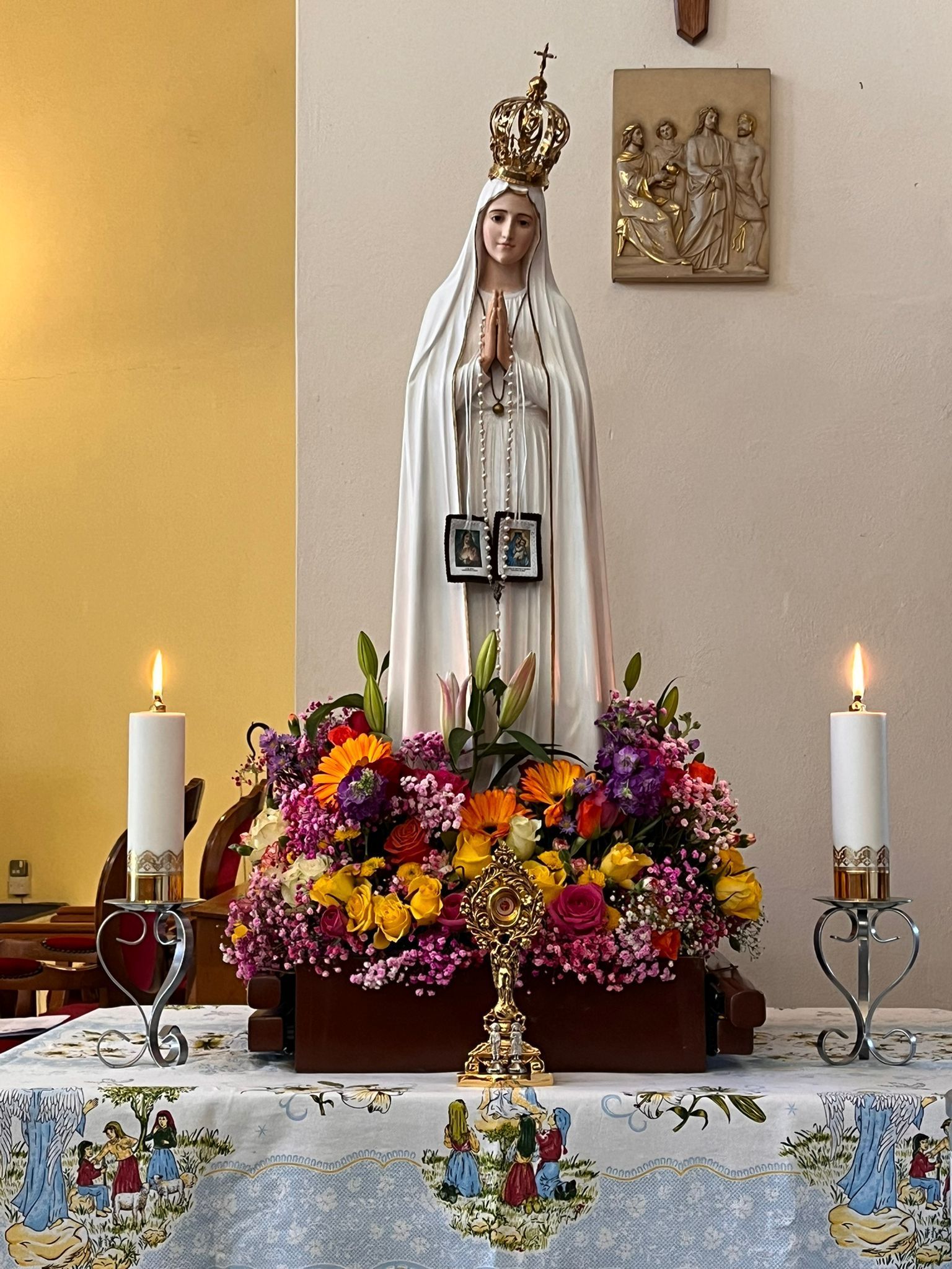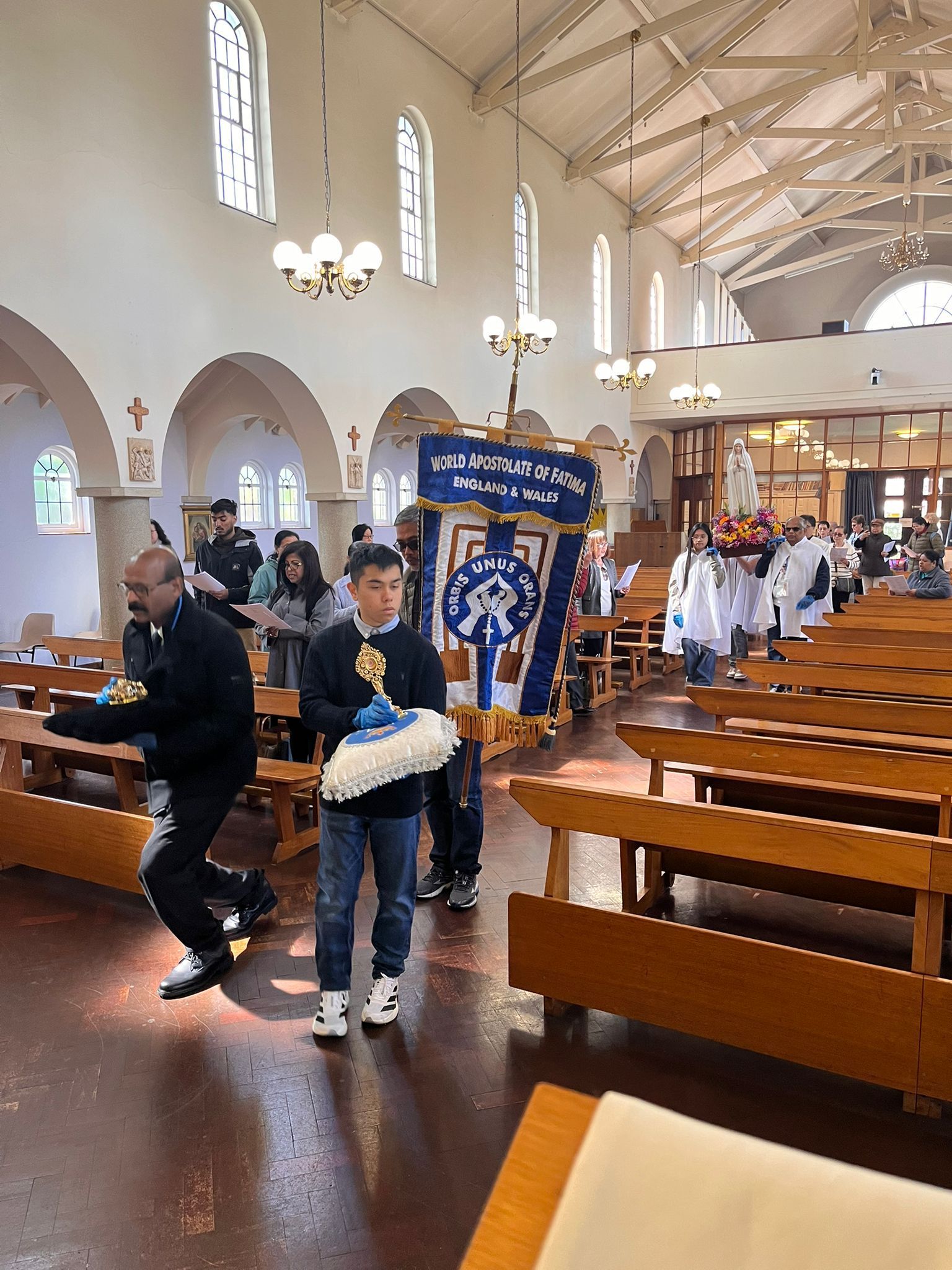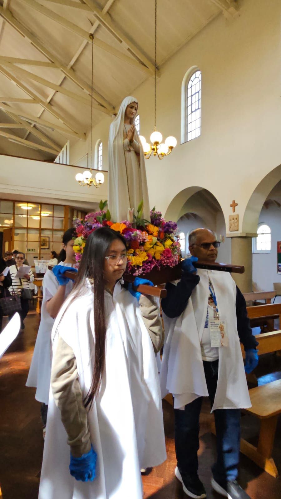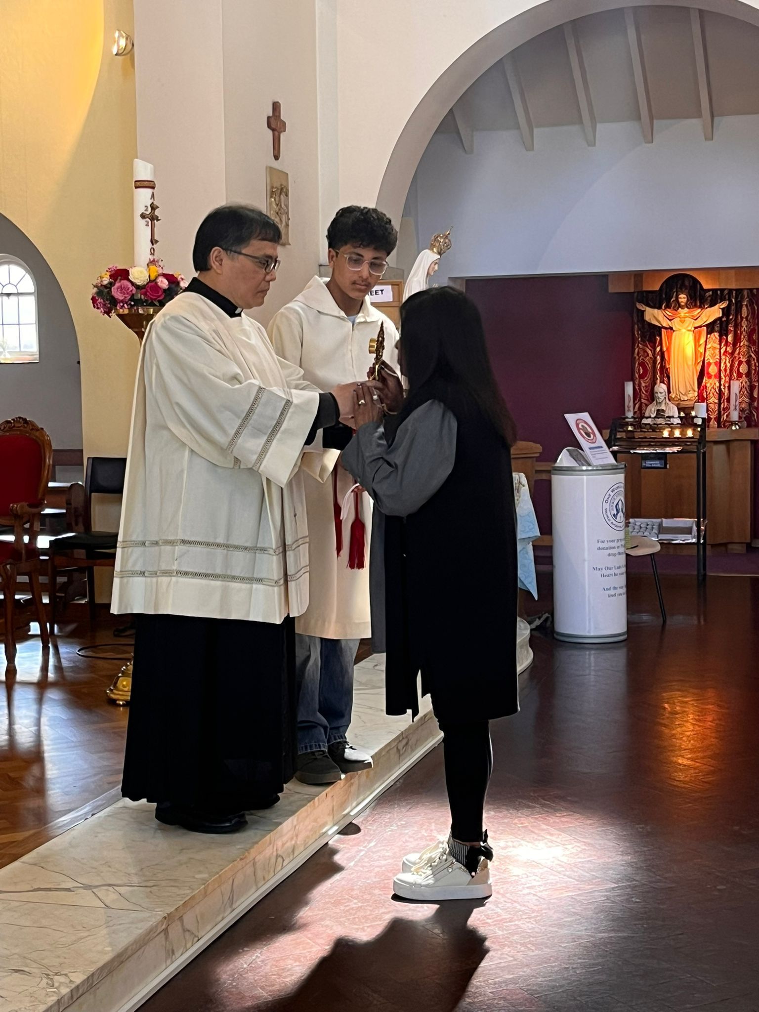 The parish community, led by Fr Antonio Pineda, gave Our Lady a heartfelt welcome. The celebration began with a joyful procession, bringing together parishioners and visitors. The statue, beautifully adorned with vibrant flowers, was carried into the church by Confirmation candidates. She was then crowned and honoured with incense, together with the relics of the Fatima saints.