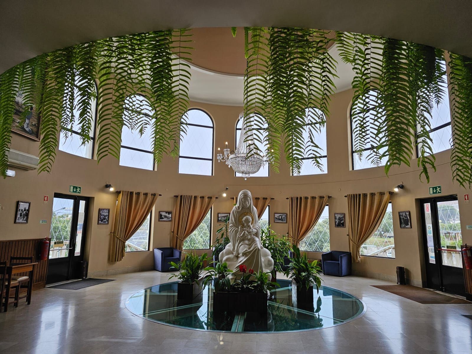 Its distinct architecture and iconic blue dome of the Byzantine chapel make it a prominent feature of the town, visible to all. Over the past 70 years, it has welcomed and housed thousands of pilgrims, hosted numerous international conferences and councils of our Apostolate, and facilitated retreats and solemn celebrations in both chapels, the Latin and Byzantine. Additionally, it has served as the home of the International Secretariat for many years now.๏ปฟ๏ปฟ๏ปฟ๏ปฟ๏ปฟ